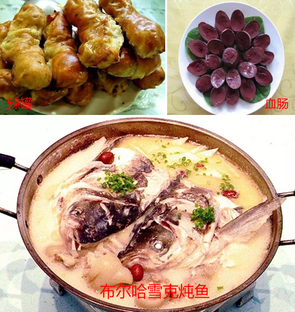 尝尝锡伯族特色菜肴:辣罐、血肠、布尔雪克炖鱼,辣罐辣出汗来,血肠香而不腻,炖鱼鲜而清香。