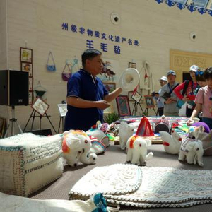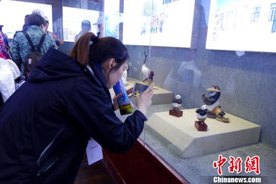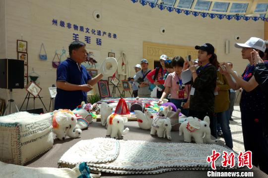 图为全国都市主流媒体记者走进海西州民族文化活动中心,参观当地特色手工艺品。 孙睿 摄