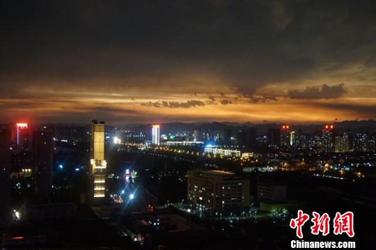 该“奇幻”景象出现时,整个城市已是万家灯火。 李岩 摄