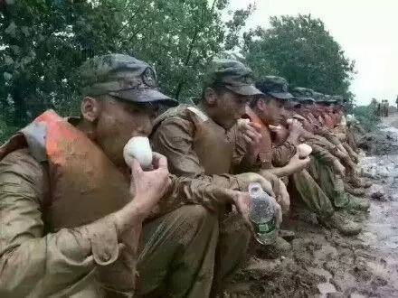 ▲抗洪官兵“啃冷馒头”曾经引起争议
