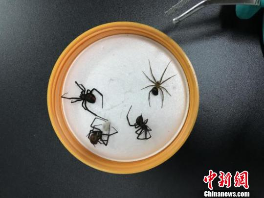 广东清远口岸首次截获赤背寡妇蜘蛛 余雪滢 摄