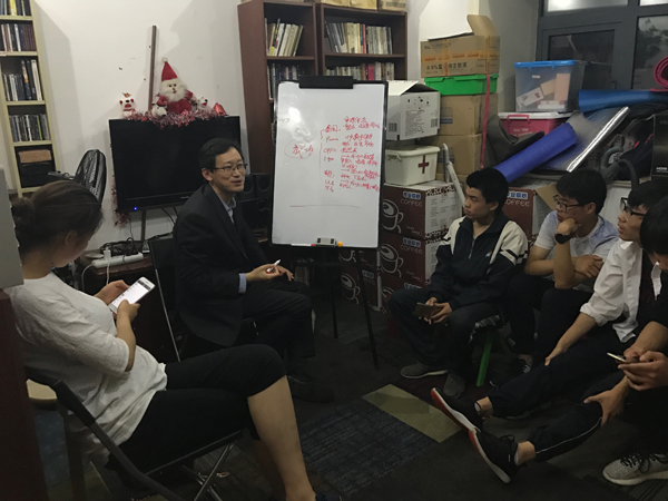 5月27日,张轶超在久牵给孩子们上TOK课,他提出一个问题:成功是什么?