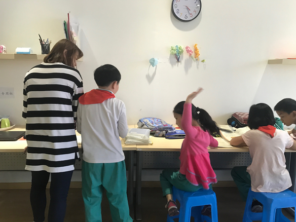 林庆庆现在在一家教育公益机构工作,每天要陪伴孩子们完成课后作业。 澎湃新闻记者 张维 图