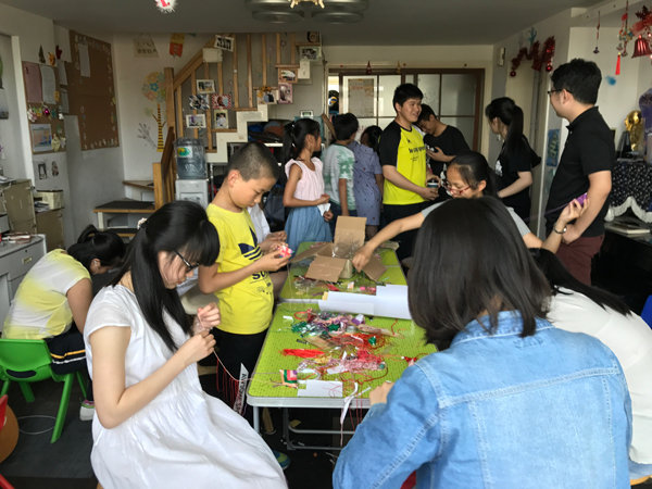 端午节,久牵浦西活动中心,孩子们在学习制作粽子。 澎湃新闻记者 张维 图