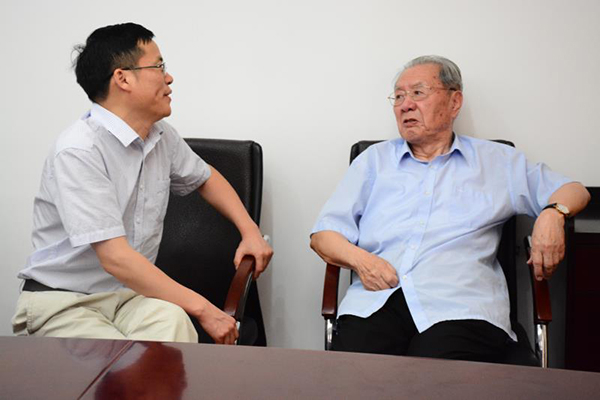 南京师范大学教授王志龙与抗战老兵刘峻交谈
