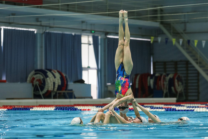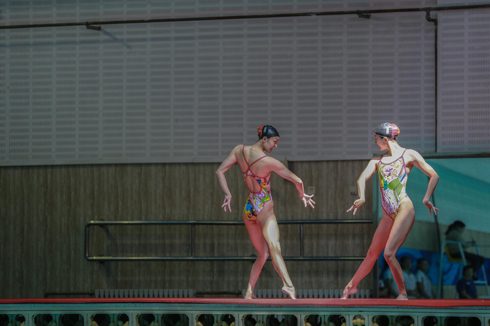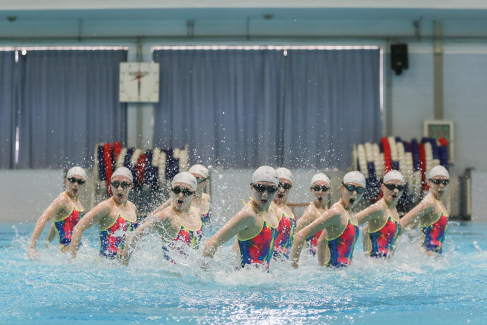 国家花样游泳队世锦赛前举行汇报测验