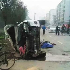 昨日,江西宜春,肇事者驾驶的小轿车。当地发生驾车冲撞行人事件致4死18伤。新华社发