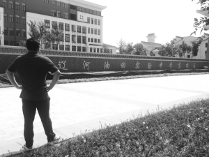 蓝色康桥朗润园业主张先生站在校门口,望着“辽河油田实验中学东校区”的牌子一筹莫展■本组图片由华商晨报记者 沈诚 摄