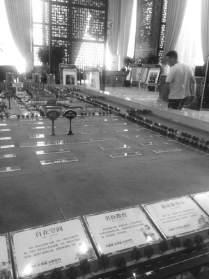 蓝色康桥销售中心摆放出“名校”宣传板,学区房仍是卖点