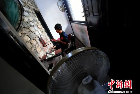 工人在高达1000多摄氏度的焦炭火炉旁工作,往往需用风扇降温。 李进红 摄