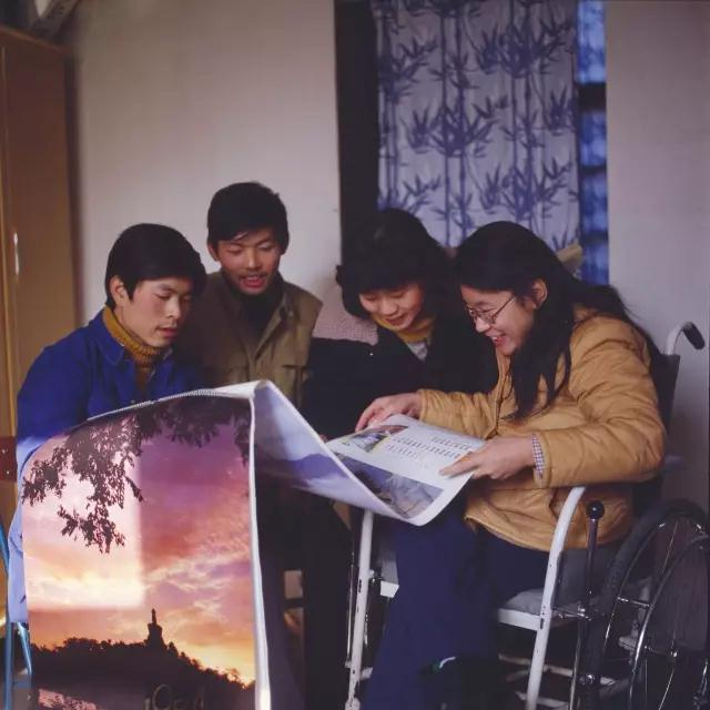 △1983年,张海迪在山东聊城家中,和聊城师范青年朋友在一起。/视觉中国