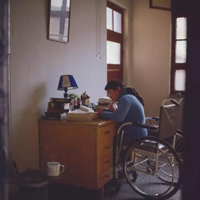 △1983年,张海迪在山东聊城家中学习。/视觉中国