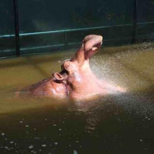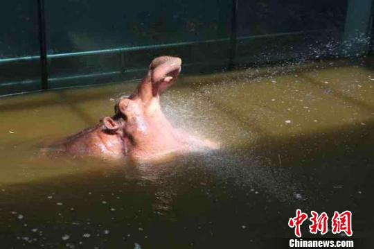 河马喜欢张着嘴冲凉 李茜 摄