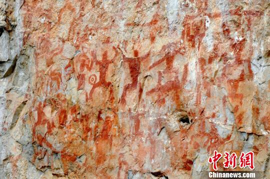 资料图:拍摄于2017年3月的广西左江花山岩画文化景观。 黄艳梅 摄