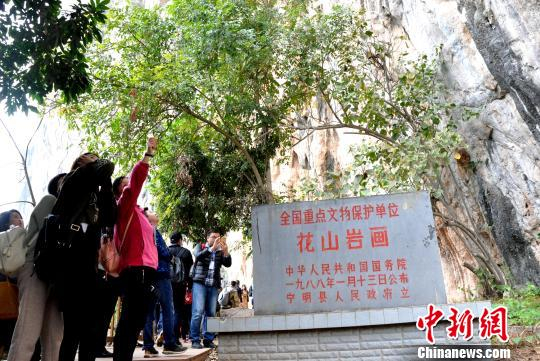 资料图:广西左江花山岩画文化景观吸引游客。 黄艳梅 摄
