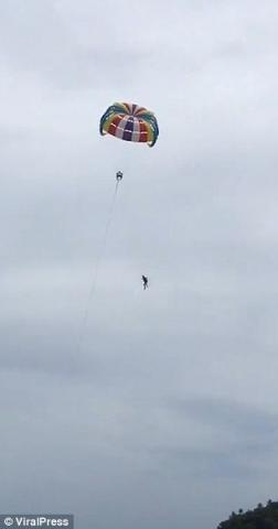 视频|70岁游客在泰国玩水上滑翔伞 升空30多米后掉落浅海区