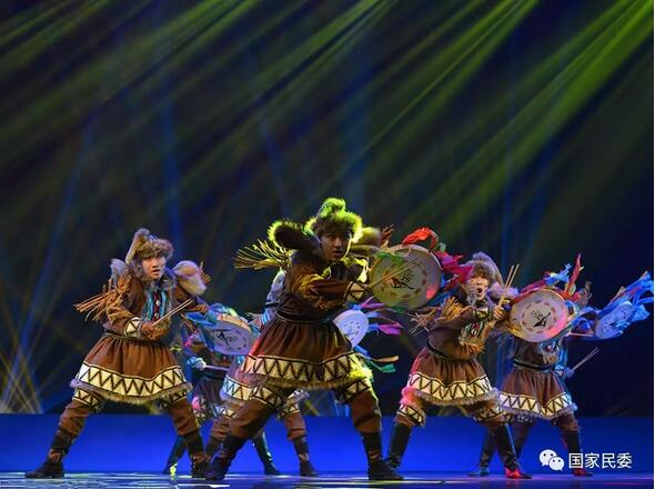 黑龙江民族职业学院表演的鄂温克族群舞《敖鲁古雅神鼓》,将国家级非遗萨满舞搬上了舞台。