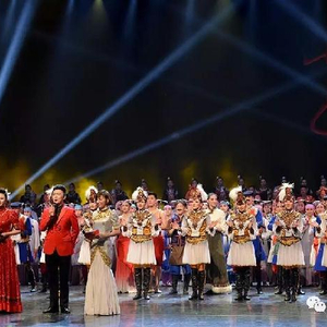 辽阔的草原、奔腾的骏马、彪悍的骑手、美丽的姑娘……透过飞扬的尘土,人们看到了牧人的欢愉和热望——由内蒙古民族艺术剧院直属乌兰牧骑倾力打造的蒙古族群舞《马背交响》,一下子将观众带进了内蒙古大草原的辽阔意境中。