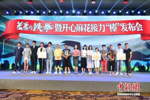 中新网7月14日电 13日,开心麻花第三部电影《羞羞的铁拳》在北京举办发布会,沈腾、马丽、艾伦等一起现身,并高喊“艾玛疼”的口号,十分搞笑。