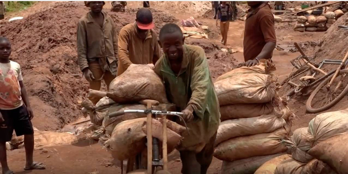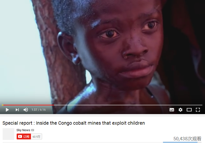 多森和理查德是一家英国媒体摄制的视频中的人物。大雨磅礴,他们在刚果(金)钴矿区劳作,用孱弱的肩膀扛起装满矿石的麻袋;他们蹲在地上,用脏兮兮的小手筛选矿石……像他们这样的“童工”没有鞋,没有任何保护措施,最小的4岁。悲惨的不止孩子,还有人因喝了被污染的水喉咙上长了肿瘤。