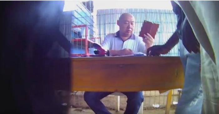 当地“蒋志仓库”的管理员朱春友是这起事件的重要当事人,按他的说法,他莫名其妙就“被采访了”。在英媒拍摄的6分18秒视频里,朱春友出现了6秒钟,有两个镜头,一个是他在收矿,填写单据;一个是他在玩手机。
