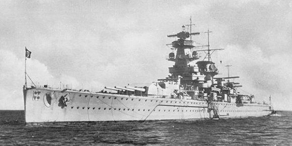 按德国的设计,“斯佩海军上将”号只是一艘巡洋舰,不过在英国眼里它显然达到了战列舰级别5. 战列舰(Battleships)《凡尔赛条约》对德国的军事力量施加了诸多限制,其中明确将德军战斗性船舰的吨位限制在10000吨以下。不过这没法阻止纳粹以全力去制造超过这个吨级的舰船。举个例子:从字面上看,1934年6月30号下水的“斯佩海军上将”号的排水量在万吨以内。然而,实际上看,当这艘军舰装上6门11英寸炮以及加上差不多有半英尺厚的装甲层之后,它的排水量就达到了全副武装及满载时的16000吨。以类似的方式,“德国”号(Deutschland)——后改名为“吕佐”号(Lützow)——和“希尔海军上将”号也分别突破限制,达到了14000及15000吨的排水量。德国机智地将这些舰船命名为“巡洋舰”,英国人则更为准确地将这个名字翻译为“袖珍战列舰”。有趣的是,这三艘军舰的建造工作均开始于纳粹党正式掌握德国政权之前,其中最早的一艘于1929年开建。希特勒上台后,迅速加快了这一建造进程,全德国的生产线也开足马力赶造军舰。1935年,纳粹当局与英国政府达成协议,允许德国拥有一支更大的海军。英国虽然逐渐开始对德国的崛起有所提防,但当时仍认为迎合希特勒可以避免战争。这种双边默契为德军发展更大吨位的军舰开辟了道路。1936年,40000吨级战列舰“俾斯麦”号和“提尔皮茨”号被提上了建造日程,德军在当时甚至有计划要发展自己的航空母舰。在短短的四年当中,希特勒就打破了对德国海军的诸多限制,并渐渐开始组织起一支在实力上足以挑战英国皇家海军的舰队。不过,在这项构想还未充分实现的时候,二战就已经爆发了。