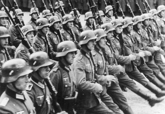 按照条约约定,德军只被允许维持不超过七个步兵师及三个骑兵师,到二战爆发前夕,希特勒已经将其扩充为98个步兵师与九个装甲师9. 德国国防军(The Wehrmacht)1935年,希特勒苦心经营两年后重新武装起来的德国军队震惊了全世界。在当年所发表的一系列演说中,希特勒宣布德国将会发展一支拥有2500架飞机的空军,而海军方面也在重新进行整编,以使其恢复强大。不过,其中最惊人的表白,则是德国已有一支装备精良、训练有素、且人数达到30万的军队——这个数是当时国际法为德国所设限额的三倍。此外,希特勒还高调抨击《凡尔赛条约》,声称要通过进一步的征兵制将他的地面部队扩张至50万人。在二战爆发时,德军兵力已膨胀至150万人;至1940年,这个数字又变成了250万人。到了这个点上,希特勒的战争机器基本上就已经如入无人之境了。即便汇集大英帝国、美国与苏联这西方三巨头之力,也要花上五年多的时间才能彻底击败它。