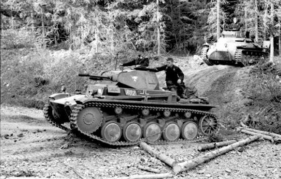 1940年德军入侵法国时的Panzer II型坦克7&8. Panzer I和II型坦克(Panzer Mk. I and II)德国在《凡尔赛条约》体系下所进行的各种履带式战斗车辆的研发工作及实验,基本都是私下以“拖拉机”为名义来完成的。早在1920年代中期,陆军的军官及军工界实业家就开始尝试新的设计,新型坦克的制造在希特勒夺权之前就已上马。纳粹正式上台不到20个月,便大量订制了5吨级的Panzer I型侦察坦克,而9吨级的Panzer II型坦克的订货量比这更大。总的来看,1939年二战爆发前,这两型坦克的产量累计超过了3000辆。它们均在入侵波兰、法国及苏联的战役中发挥了关键性的作用。