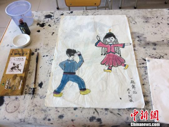 伽师县双语小学少数民族学生的国画作品。 蔡敏婕 摄
