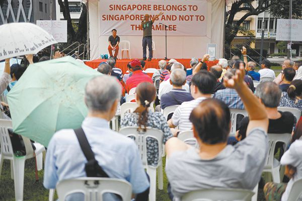 新加坡本土论坛网站“mothership”称,一些抗议者当天在稍后的发言中将重点放在了未来的总统选举上。政府有意将新一届总统的位子让该国马来族候选人继任。批评人士称,政府此举旨在将华族选出的反建制候选人边缘化。