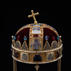 2017年6月1日,由上海博物馆和匈牙利国家博物馆联合举办的“茜茜公主与匈牙利——17-19世纪的匈牙利贵族生活”特展在上海博物馆开幕。此次展出展示了来自匈牙利国家博物馆的149件馆藏精品,展品中包括匈牙利国王加冕时所用的配饰权杖、宝球、斗篷、宝剑,还有一个带有倾斜的十字架的圣冠。“匈牙利圣冠就像犹太人失落的方舟”,14世纪以来,王室的权力不仅仅是抽象的王权,而是有一个具体的象征对象:圣冠。“这也意味着匈牙利王国是一个特殊的国家:他们不是在寻找一个国王创造一个王冠,而是要为王冠找一位国王”。可见,匈牙利人对圣冠十分尊崇。可是,为什么圣冠上的十字架是歪的呢?