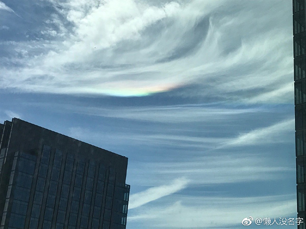 上海上空有七色云彩?学名环地平弧,中国古代称之为日载