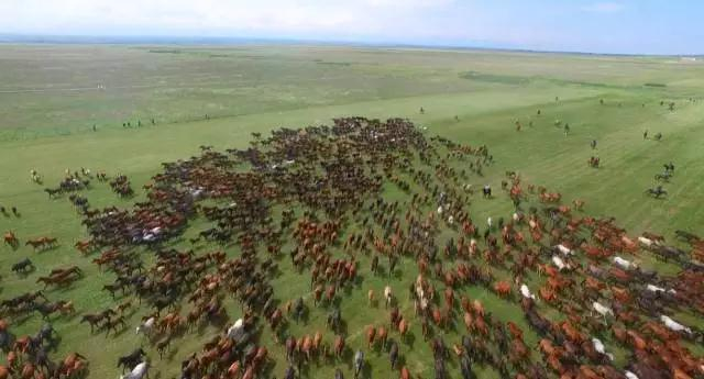 航拍万马奔腾。 史玉江 摄