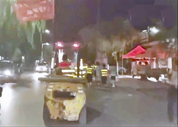 车祸发生后,暴走团夜间上路叉车“护航” 。 视频截图