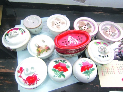 “瞧!这是我收藏的粉缸,熟悉吧!”在老人们的欢笑声中,张玉顺捧着一堆宝贝向大家展示,是二三十个瓷制的缸子,有海棠形、有鸭蛋形,上面画着石榴,写着“龙凤呈祥”、“百年好合”等字样。石榴图案寓意着“多子多福”,百年好合字样寓意着对晚辈婚姻的美好祝福。张玉顺说:“我收藏的这些粉缸有一部分是民国时期的,姑娘出嫁时,父母将此作为陪嫁品。”过去人将粉放在粉缸里。傍晚洗澡后,妇女和小孩喜欢用粉擦蘸点粉,涂在身上,擦完皮肤滑滑的,有的粉还有驱蚊防蚊的作用。