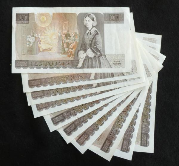 众所周知,英国为君主立宪制国家,在其法定货币正面一直印有现任君王的肖像画,这几十年来英女王伊丽莎白二世的肖像始终位列各币值英镑纸币的正面上,而自1950年代发行的“B系列”英镑以来,各币值英镑纸币背面图案一改以往的狮子形象,改以英国历史上著名人物肖像。