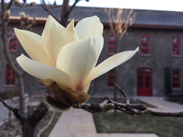 进入北大校园约下午两点多。文研院位于静园二院,从地图上看,她的位置也是北大名副其实的“U-center”。用“她”字,是因为静园二院最早为燕京大学的女生宿舍,再后来是历史系办公楼,雕梁画壁,古色古香,红色的院门上有紫藤萝花架,估计再有一个半月就会盛开。院中还有一株广玉兰,广玉兰是我老家镇江的市花,暏之尤为亲切。