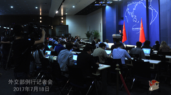 原标题:2017年7月18日外交部发言人陆慷主持例行记者会