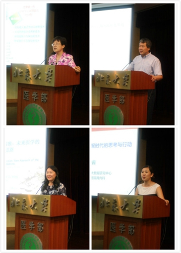 作大会特邀报告的学者们开幕式上乔杰、约翰霍普金斯大学教授王小勤、黄超兰研究员、张路霞教授进行了大会特邀报告,分享了在交叉领域的研究成果以及在各自领域的未来规划和发展方向。在精准医学、医学人文、数字化医疗装备、智慧医疗4个分论坛中,来自北京大学化学与分子工程学院、生命科学学院、工学院、信息科学技术学院、基础医学院、药学院、医学人文研究院、附属医院及IBM中国研究院的近30位专家和青年学者进行主题报告。重点介绍了北京大学在上述四个交叉前沿领域的最新研究成果、跨界合作经验、交叉合作需求、医学生培养模式等。