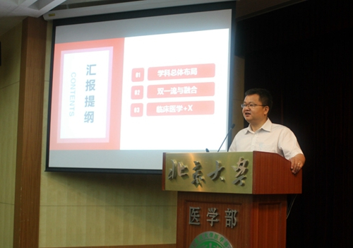 张平文作报告张平文在报告中指出:“临床医学+X”是大学层面在“双一流”建设中布局的两个方向之一。在与基础学科的交叉融合过程中,医学部的任务极其重大,学科结构、单位结构、资源配比等将会适应性变化,学校将通过教育教学、人事制度、管理体制、学术体系、资源配置五大改革措施推进实现“双一流”的建设目标。他希望通过联合项目、共建新体制研究中心、集群聘任等手段更好地促进本部与医学部的融合,使科研工作者更好地发挥学科引领作用。