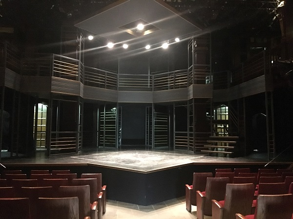 独自参观完画展,发现在长廊的尽头还有一座小剧院,据说这里每年秋天的时候会演出很多莎士比亚的戏剧,非常热闹。我乱逛走上剧院舞台的中央,看见头顶的天花板上画着一只白色的独角兽,下面印着莎翁的名言All the world’s a stage,and all the men and women merely players(整个世界都是舞台,男男女女仅仅是演员)。