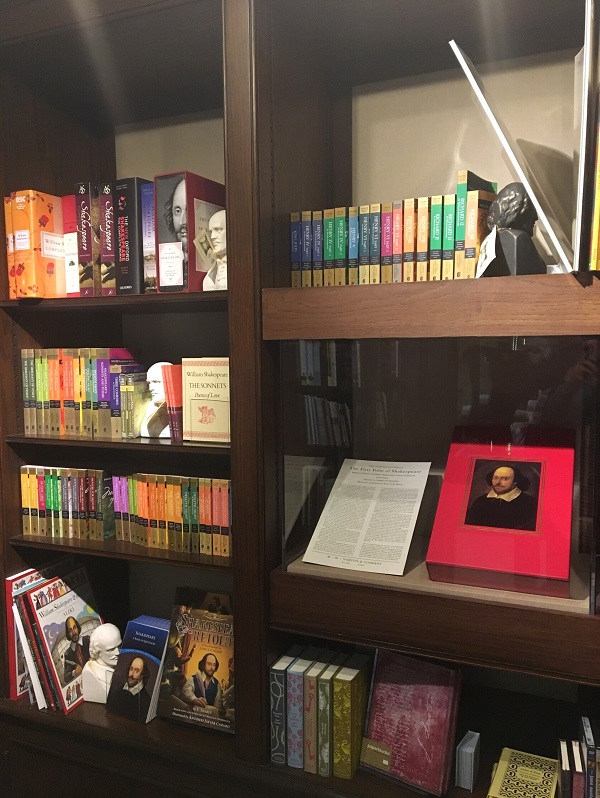 福尔杰虽出身普通家庭,但通过教育和迎娶至少是中产阶级的女性,加上自身的努力,已经在走向上流社会。而对莎士比亚的收藏更是一种自抬身价、标榜身份的做法,毕竟莎士比亚曾是为国王剧院服务的,想想莎士比亚写的那些关于王室的故事吧。当然其意义并不限于此。该馆的主页曾这样介绍到他们二人收藏的缘起:“在艾米丽·福尔杰后来的记录中,亨利·福尔杰相信诗歌是美国的国家理念、信念和希望的源泉之一。”福尔杰的这段话当然有夸张之嫌,谁都知道美国人的国家理念、信仰和希望不是描绘在诗歌之墙上的,而是赤裸裸地用枪杆子打出来的。但是,这个隐喻恰好表现了诗歌的兴观群怨作用。然而诗的这种功效并非是具有民族性的,英语诗可以兴观群怨、中文诗一样可以兴观群怨。与其生搬硬套地说“莎士比亚和美国的联系是福尔杰图书馆坐落在首都中心的原因,”不如说脱胎于殖民地的美国需要莎士比亚所代表的英语的正统性来标榜美式英语的合法性。收藏莎士比亚,于国于民都是体面的、重要的和值得炫耀的。