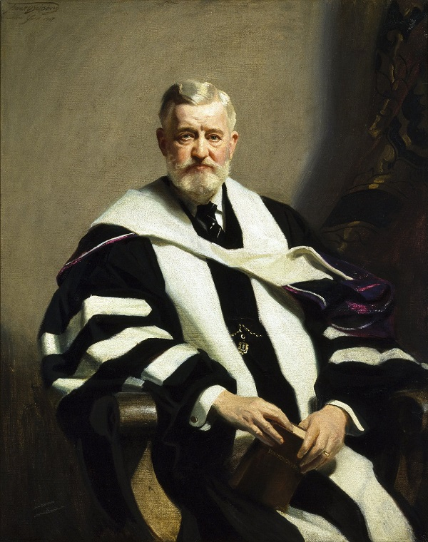1927年所作的福尔杰画像,他手中的书是现存唯一一部完整的莎士比亚《伪版对开本》(False Folio),现存于该馆。