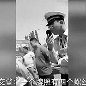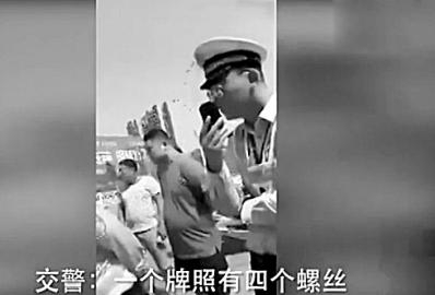 交警称车牌安2颗螺丝违章 车主:你这警车也只安2颗