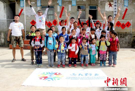 支教研究生和孩子们在大坪学校合影。 周麟玲 摄
