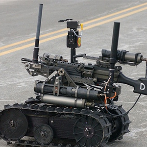 机器人家族中最拉风的,要数代号为“剑”的美军战斗机器人。它个头不足1米,却披挂“豪华”,装备有四台光学侦察瞄准设备、M-249机枪、M-16系列突击步枪和M202-A16毫米火箭弹发射器等。它每分钟可射出1000发子弹,而且命中率极高,几乎达到100%。