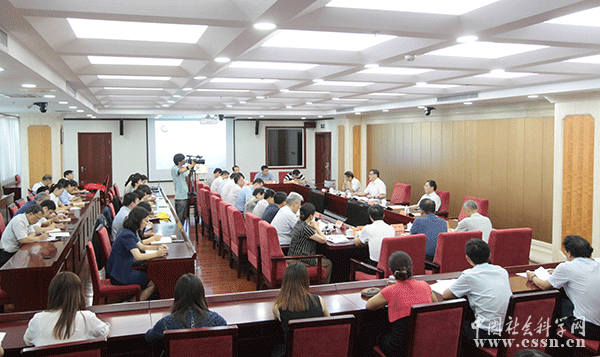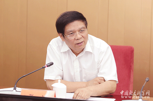 图为中国社会科学院副院长、党组成员张江主持会议。本网记者 朱高磊/摄