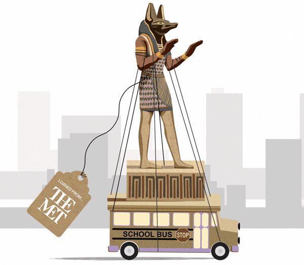 我记得孩童时代看《芝麻街》,其中一个场景“不要吃掉那些画”是在Met取景的,特别恐怖;以及一位埃及男孩从坟墓里出来,请求大鸟称他的心脏重量,判断能否进入来世。Met只需要雇罗伯特·威尔逊来做一个现场版就够了。想象一下,一只巨大的鸟非常缓慢地飞着,一位小孩和他的心脏投影在地上,星星在屋顶上闪烁。多美啊!我肯定会去捧场的。