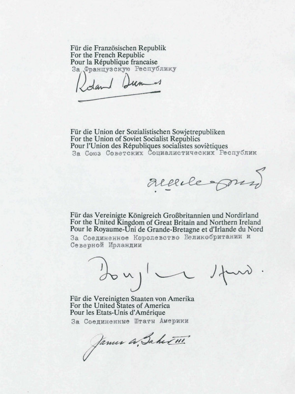 英美法苏四大国在《2+4条约》上的签字