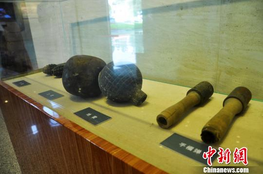 红军时期使用的手榴弹和地雷。 张强 摄